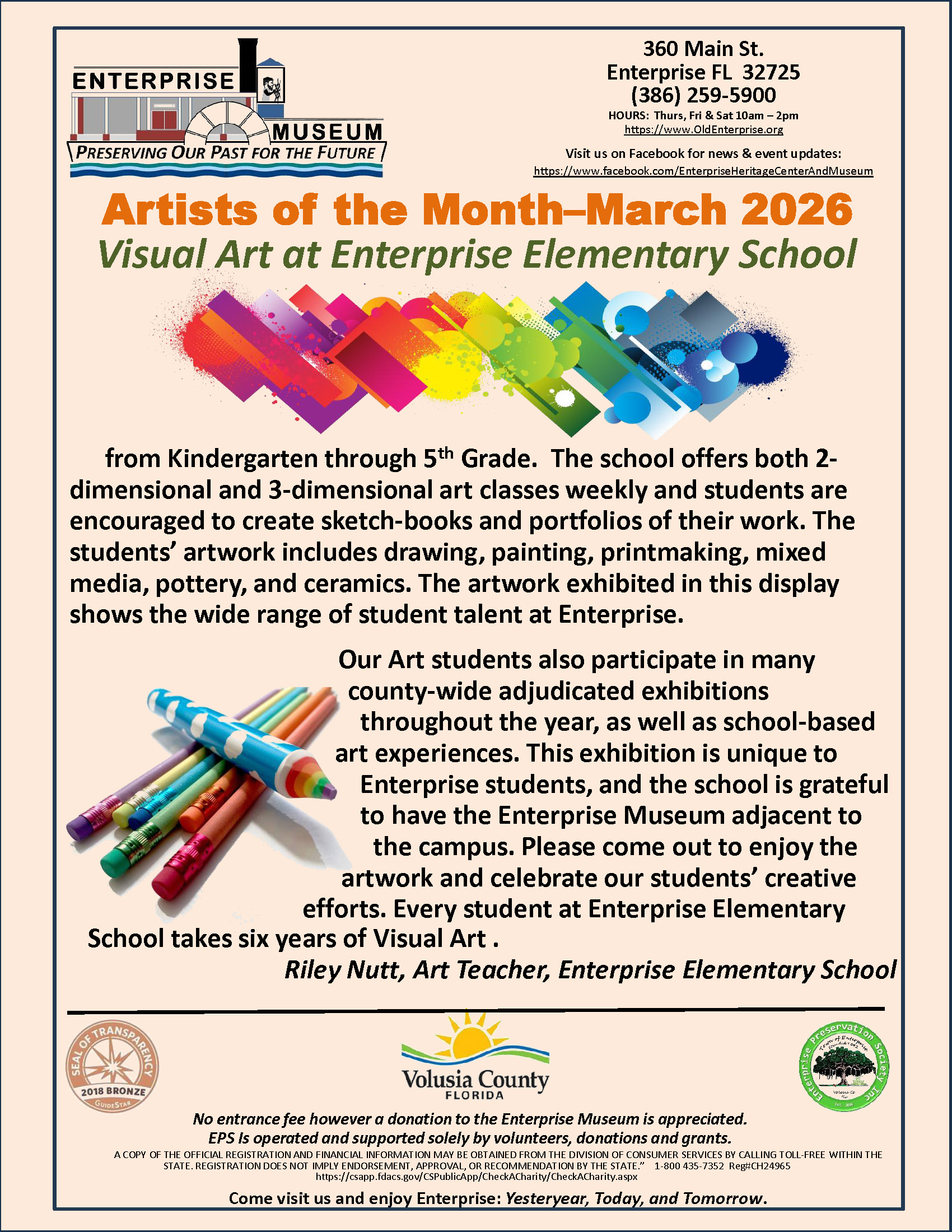 Preserving and sharing the unique heritage of Historic Enterprise, Florida since the community's founding in 1841.